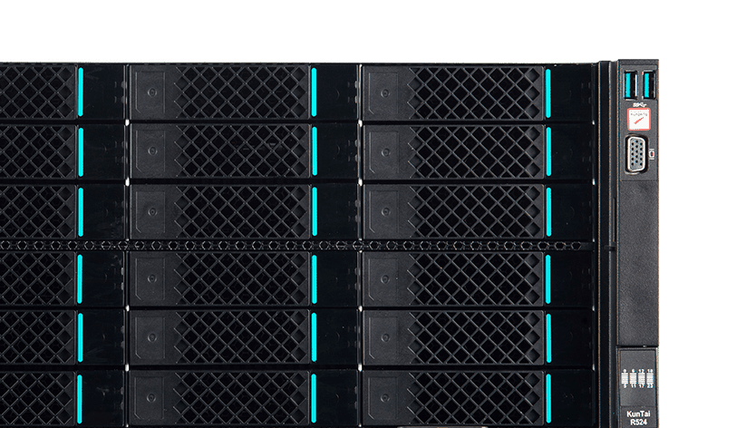 KunTai R524 存储型服务器是抖圈数码基于鲲鹏处理器推出的新一代 ARM数据中心服务器。主要面向存储业务,具有海量存储、高性能、低功耗以及易扩展的特点,适合为大数据分析、软件定义存 储等应用场景的工作负载进行髙效加速。